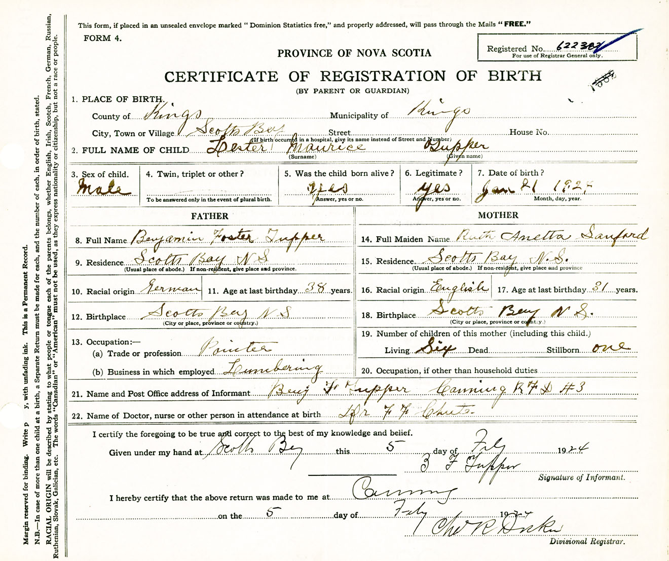 Male Birth Registration: Year: 1924 number: 62200382
