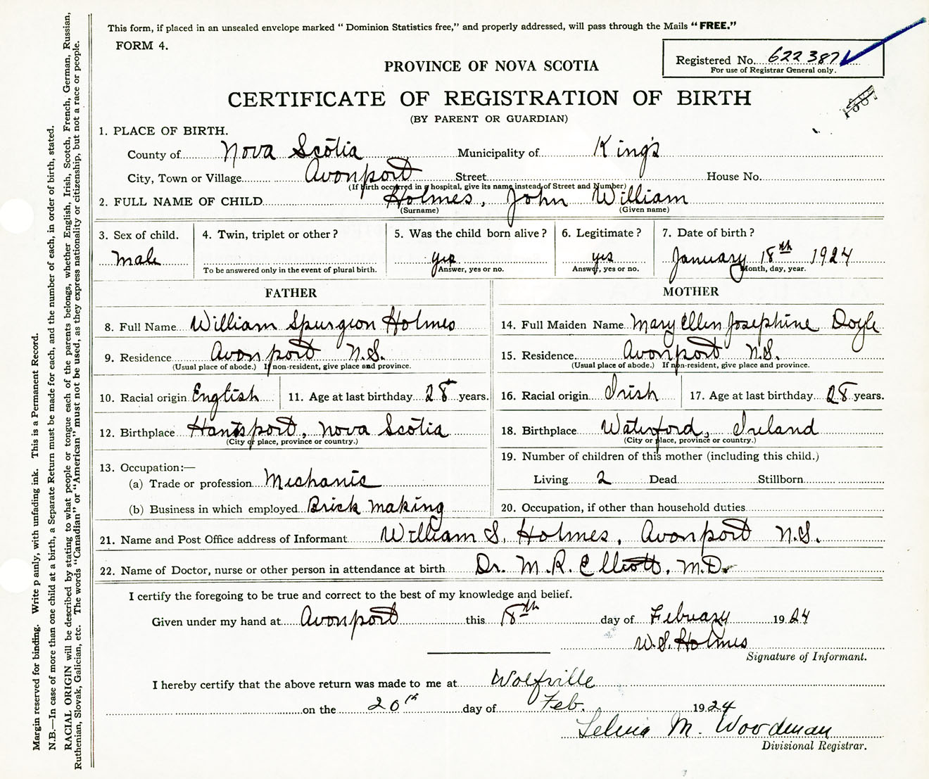 Male Birth Registration: Year: 1924 number: 62200387