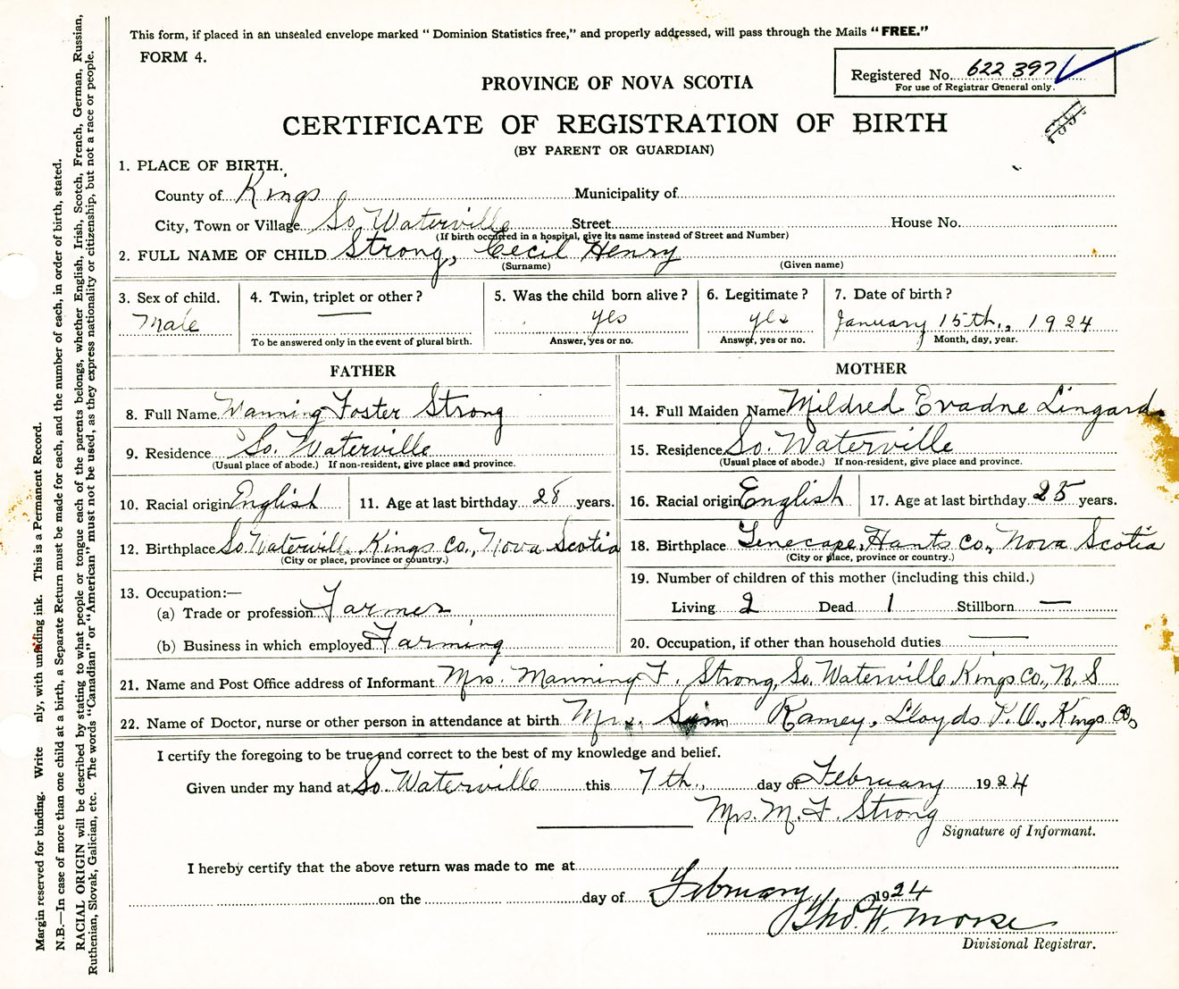 Male Birth Registration: Year: 1924 number: 62200397