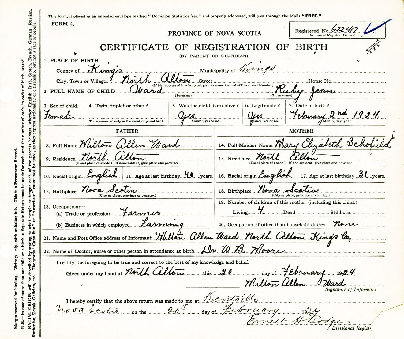 Female Birth Registration: Year: 1924 number: 62200417