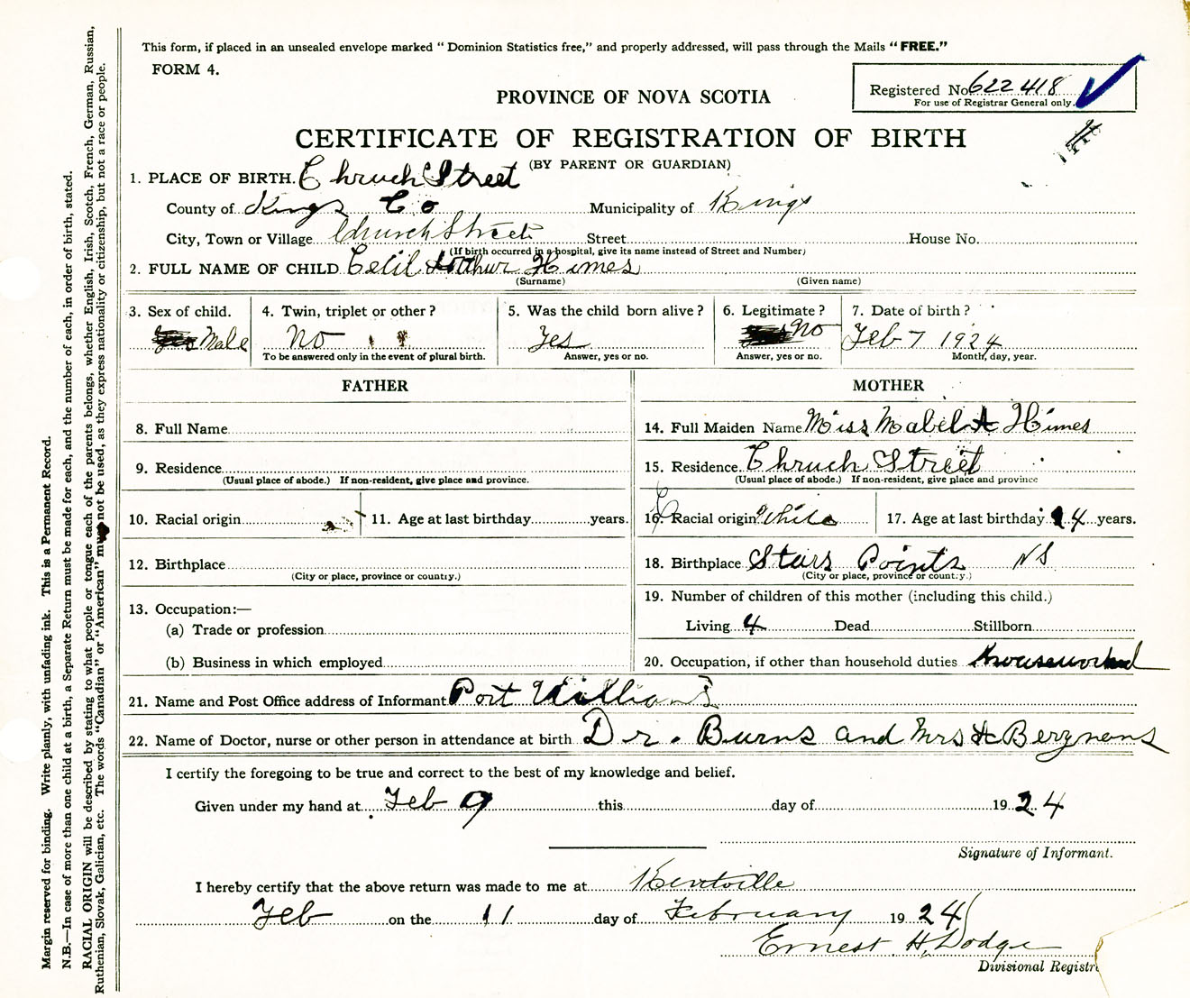 Male Birth Registration: Year: 1924 number: 62200418