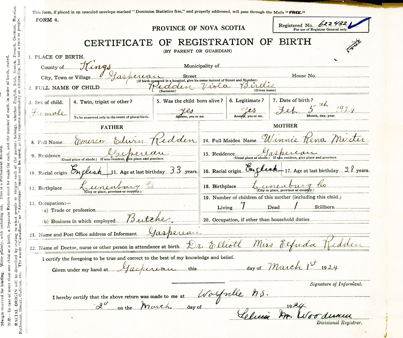 Female Birth Registration: Year: 1924 number: 62200432