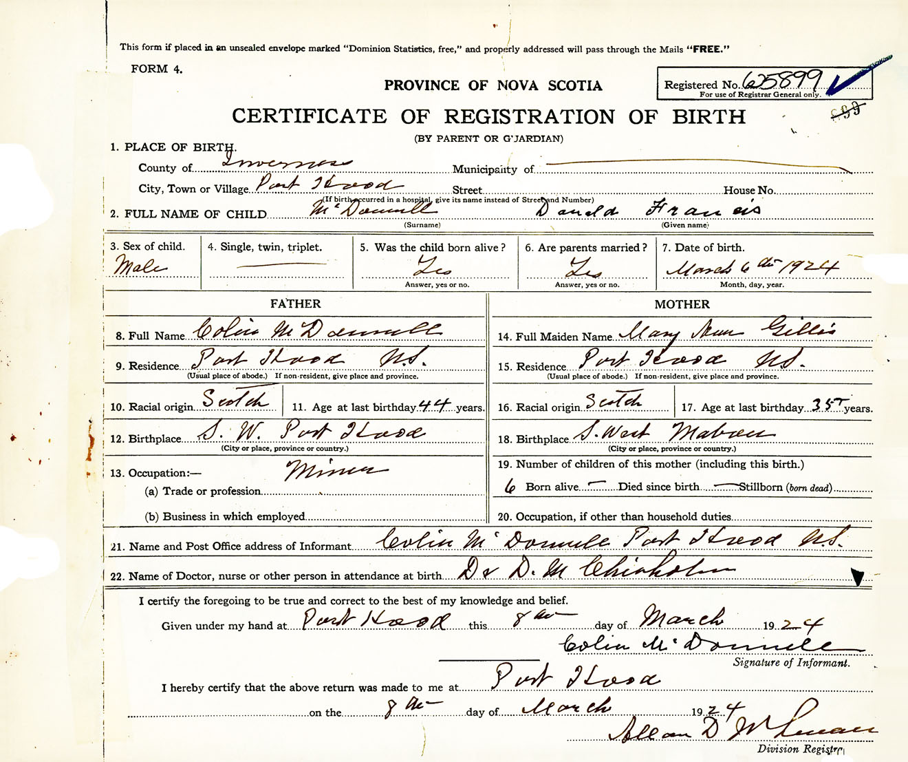 Male Birth Registration: Year: 1924 number: 62500899