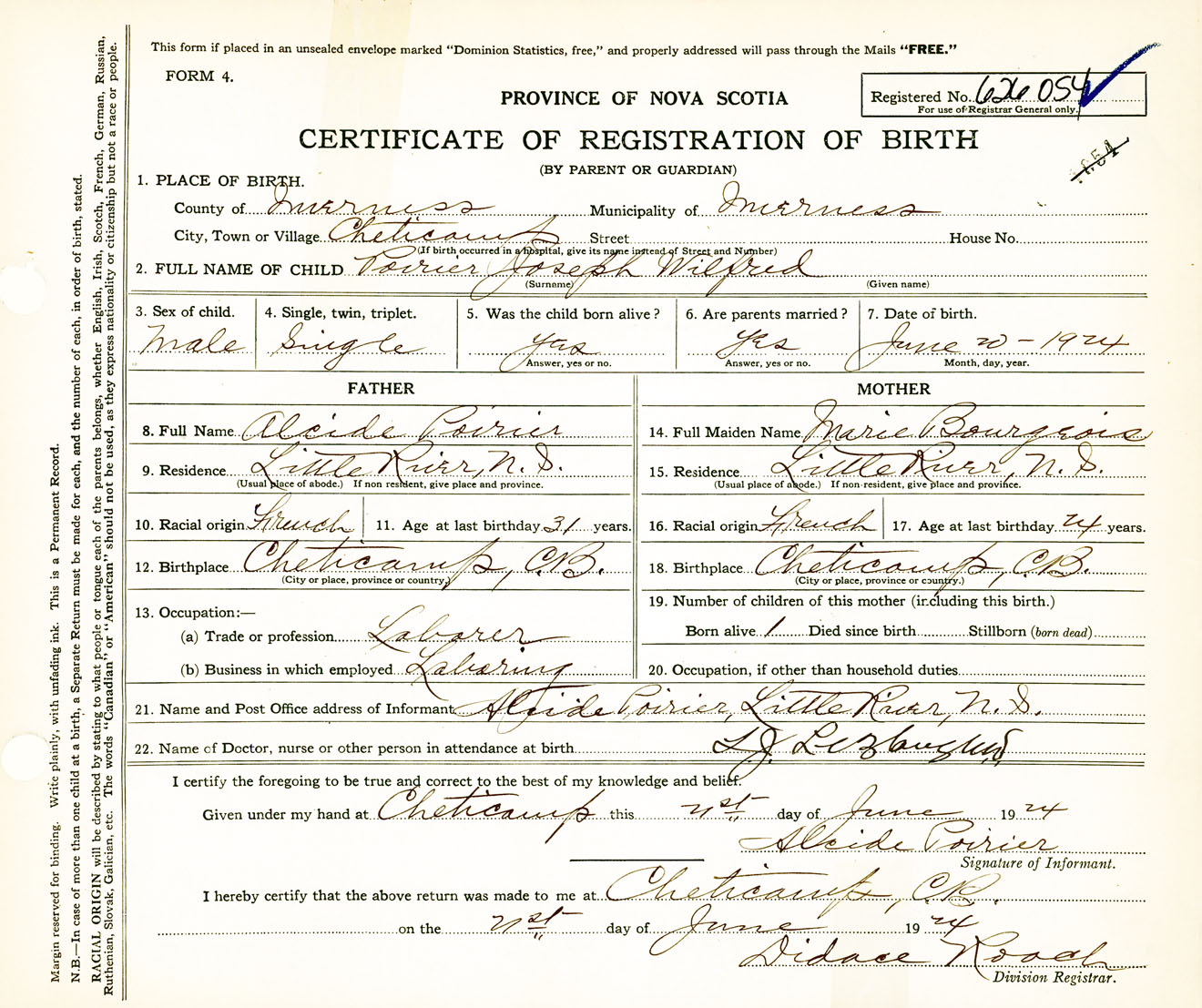 Male Birth Registration: Year: 1924 number: 62600054