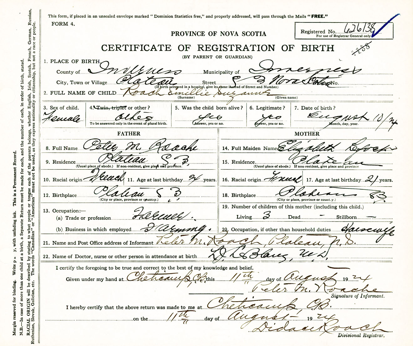 Female Birth Registration: Year: 1924 number: 62600138