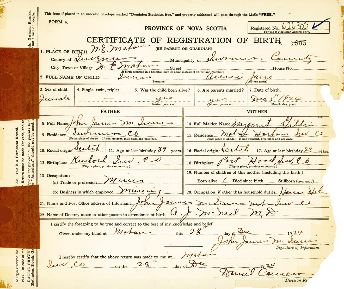 Nova Scotia Archives — https://archives.novascotia.ca/vital-statistics/birth/?ID=456023