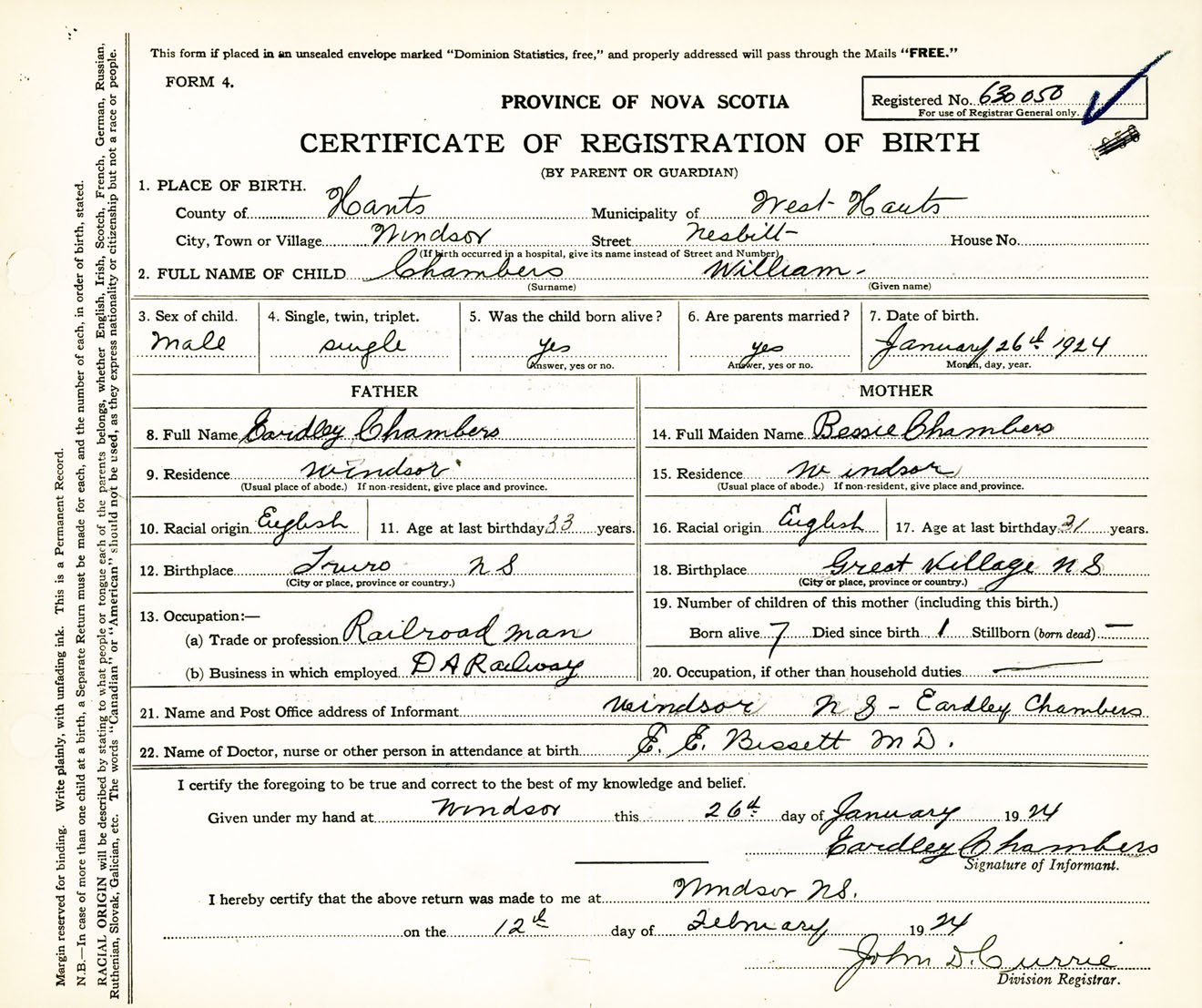 Male Birth Registration: Year: 1924 number: 63000050