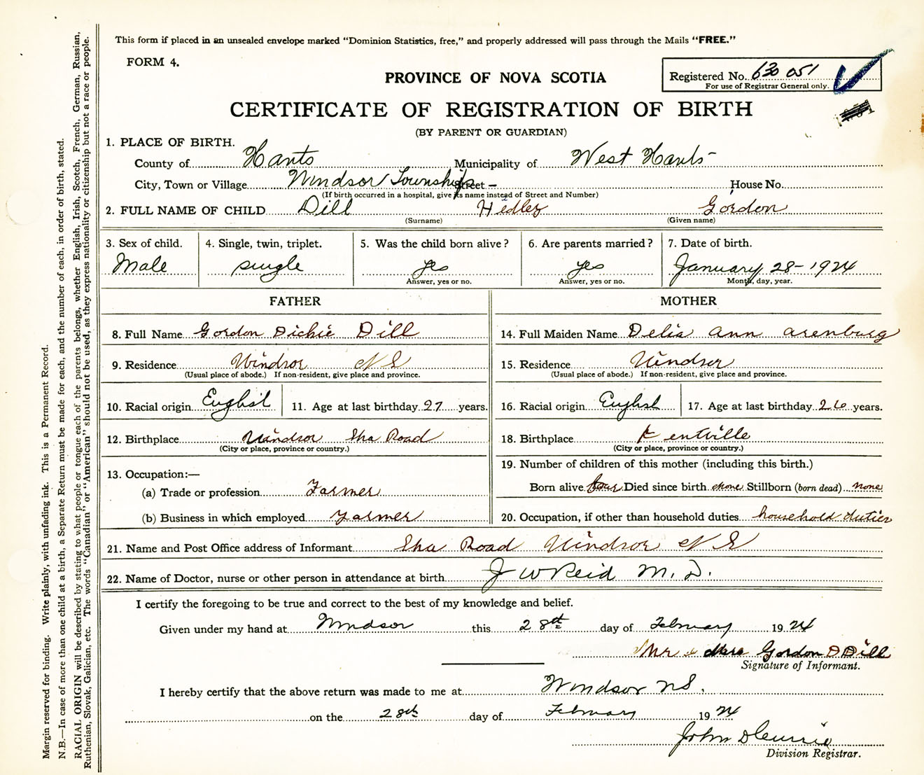 Male Birth Registration: Year: 1924 number: 63000051