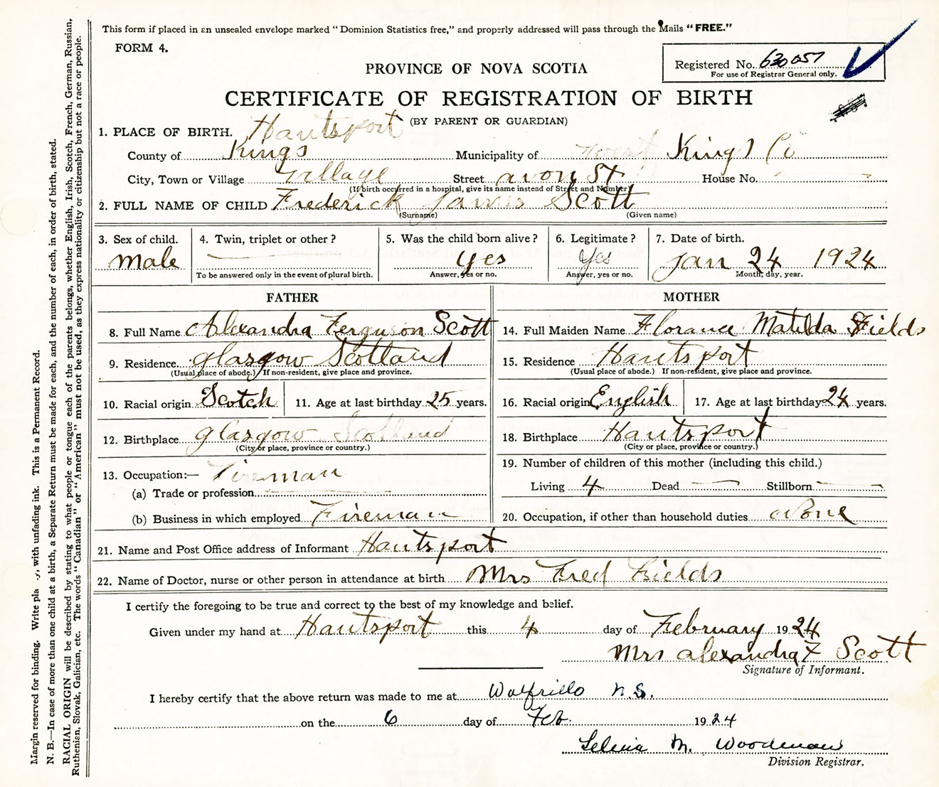 Male Birth Registration: Year: 1924 number: 63000057