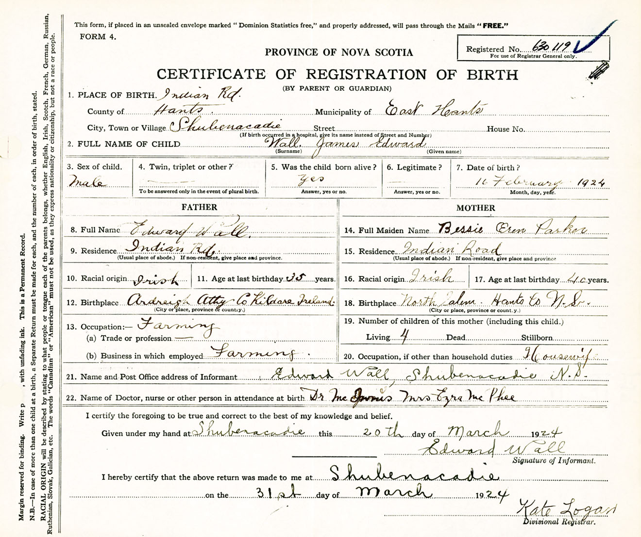 Male Birth Registration: Year: 1924 number: 63000119