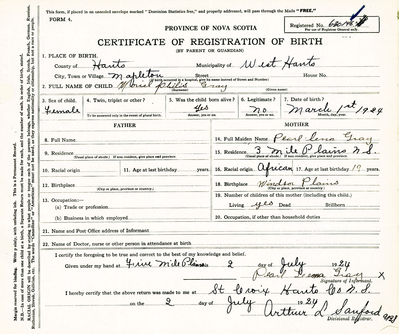 Female Birth Registration: Year: 1924 number: 63000146