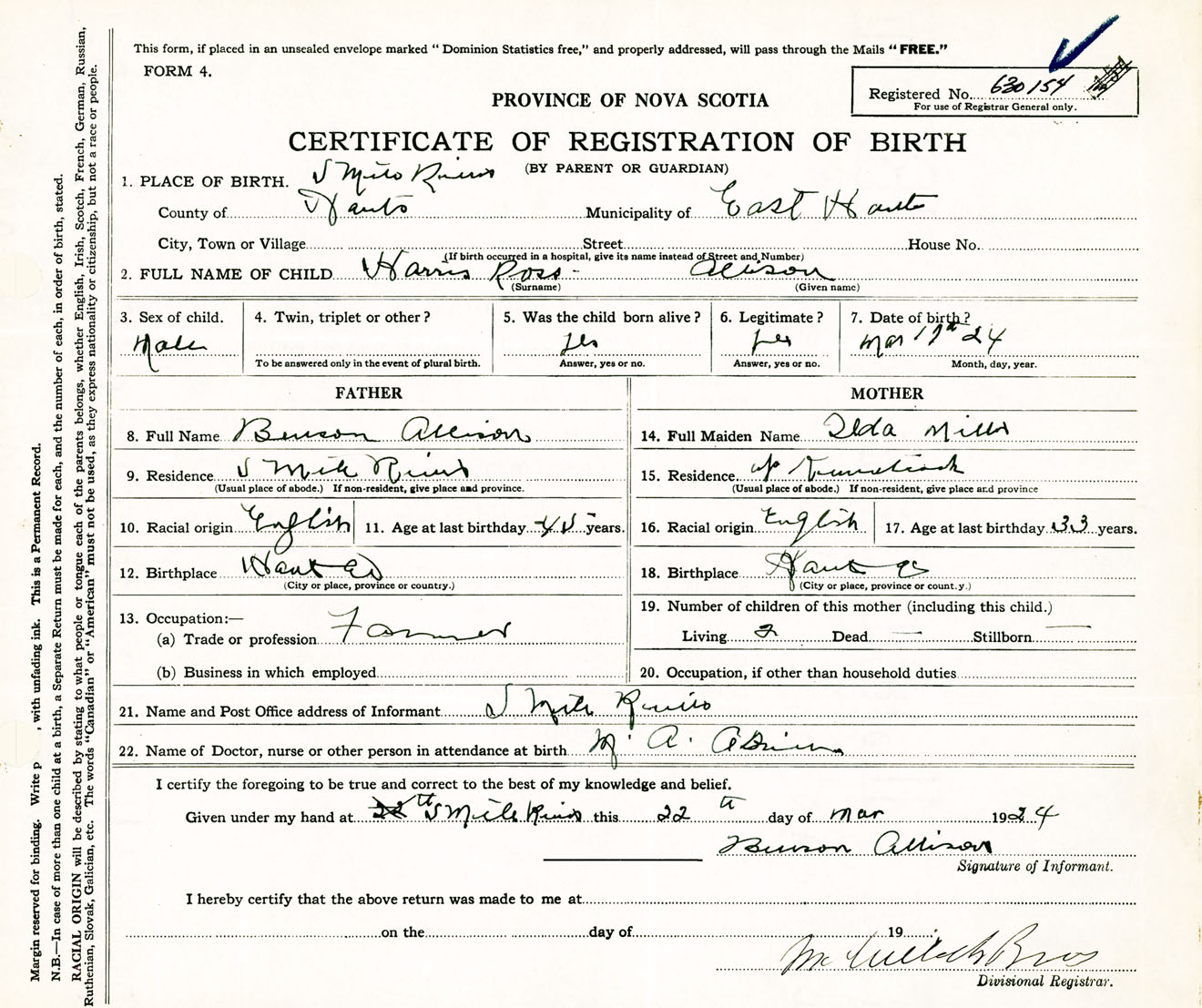 Male Birth Registration: Year: 1924 number: 63000154