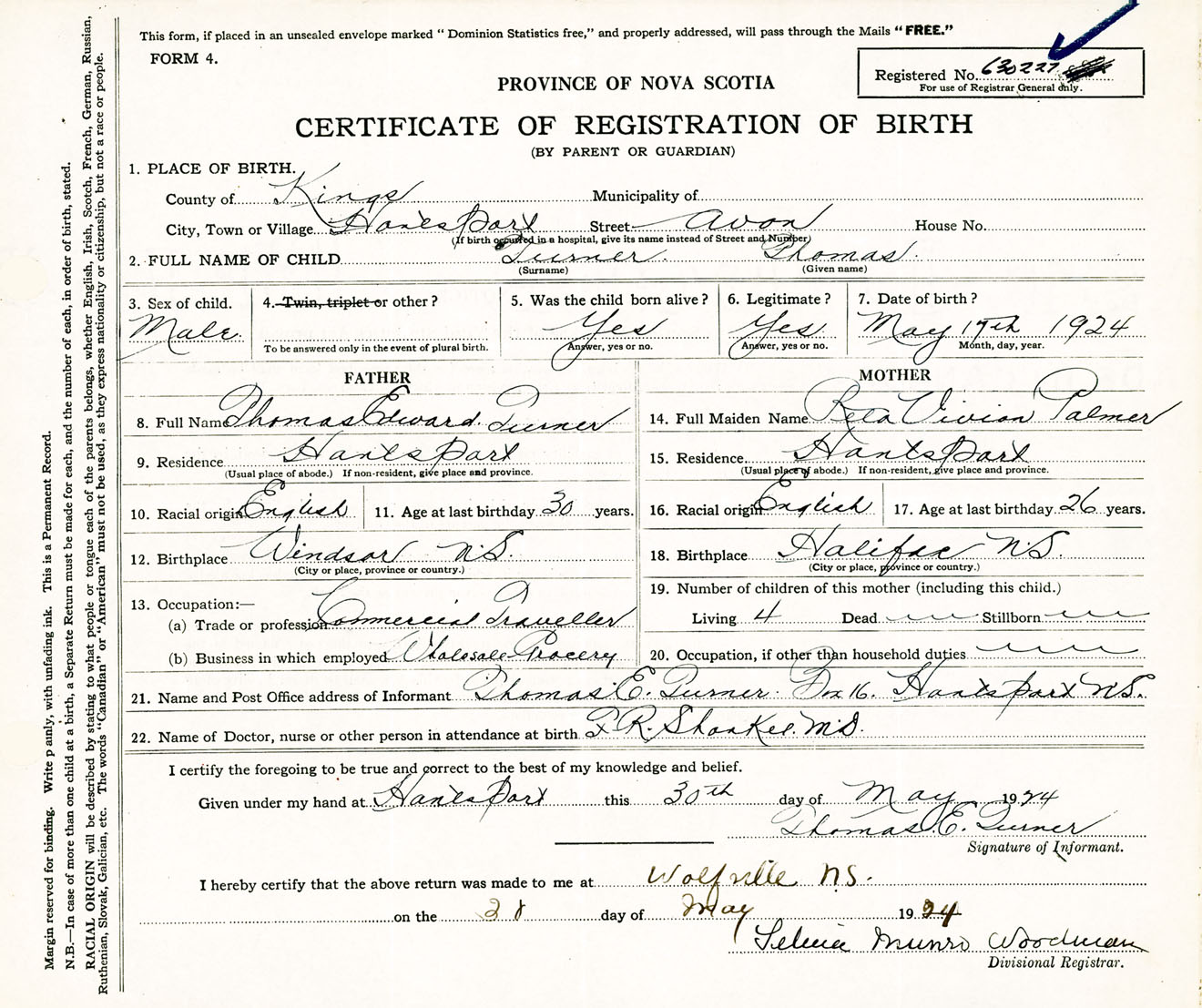Male Birth Registration: Year: 1924 number: 63000227