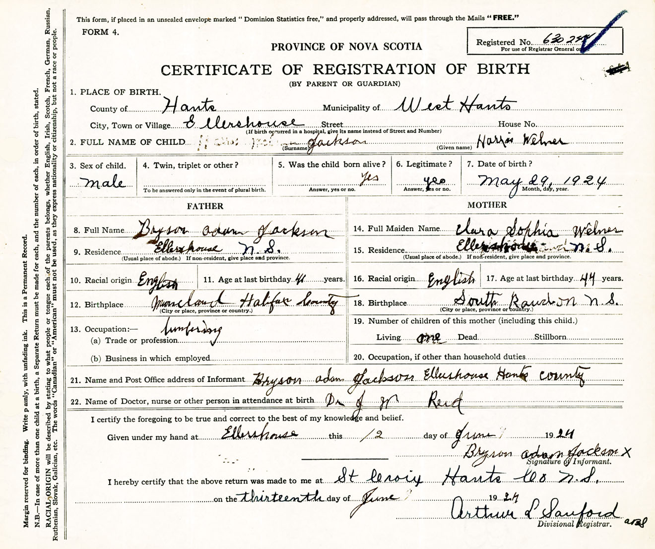 Male Birth Registration: Year: 1924 number: 63000244