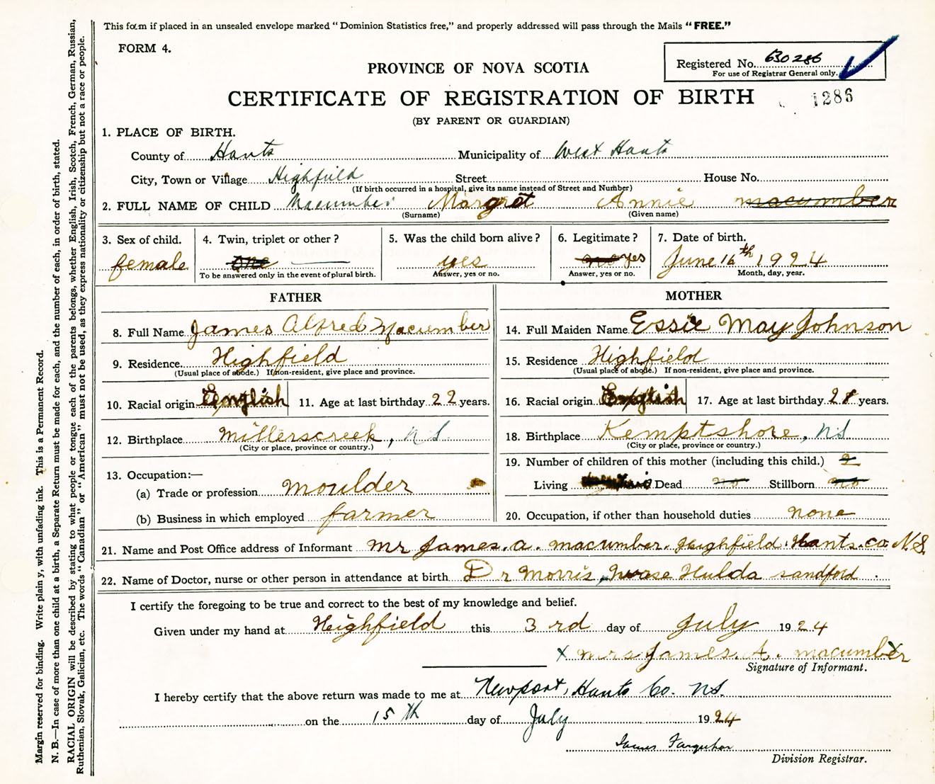 Nova Scotia Archives — https://archives.novascotia.ca/vital-statistics/birth/?ID=456276