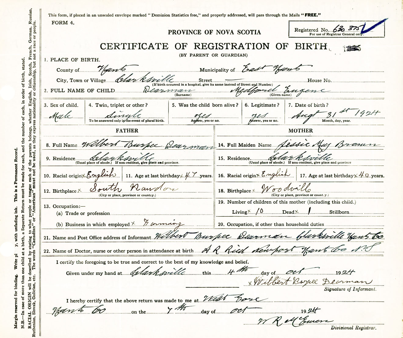 Male Birth Registration: Year: 1924 number: 63000375