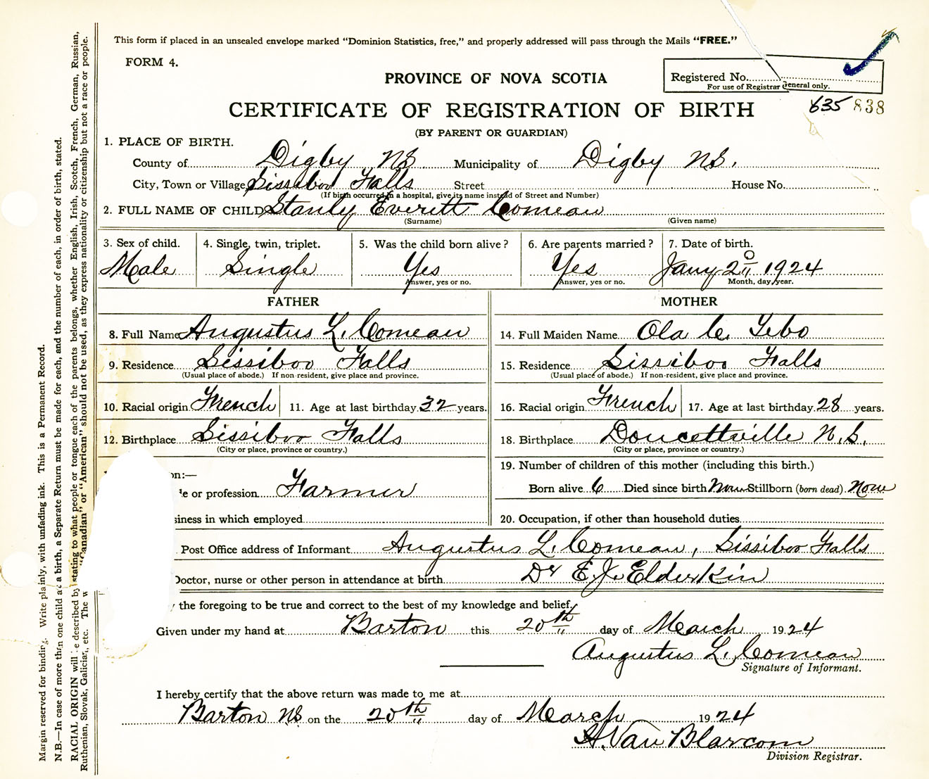 Male Birth Registration: Year: 1924 number: 63500838