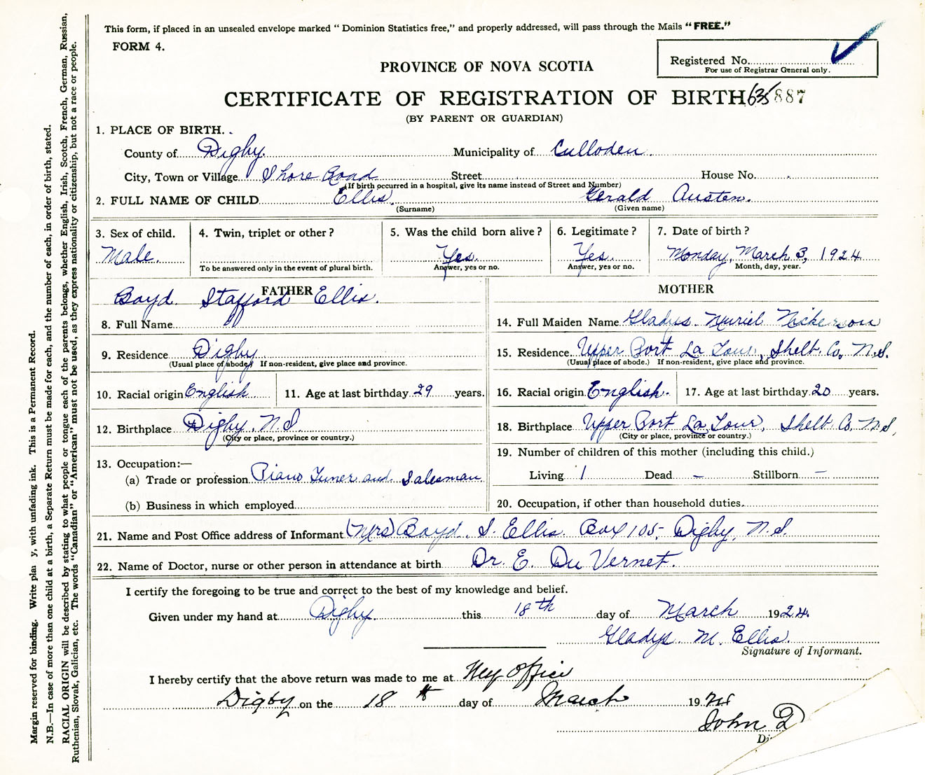 Male Birth Registration: Year: 1924 number: 63500887