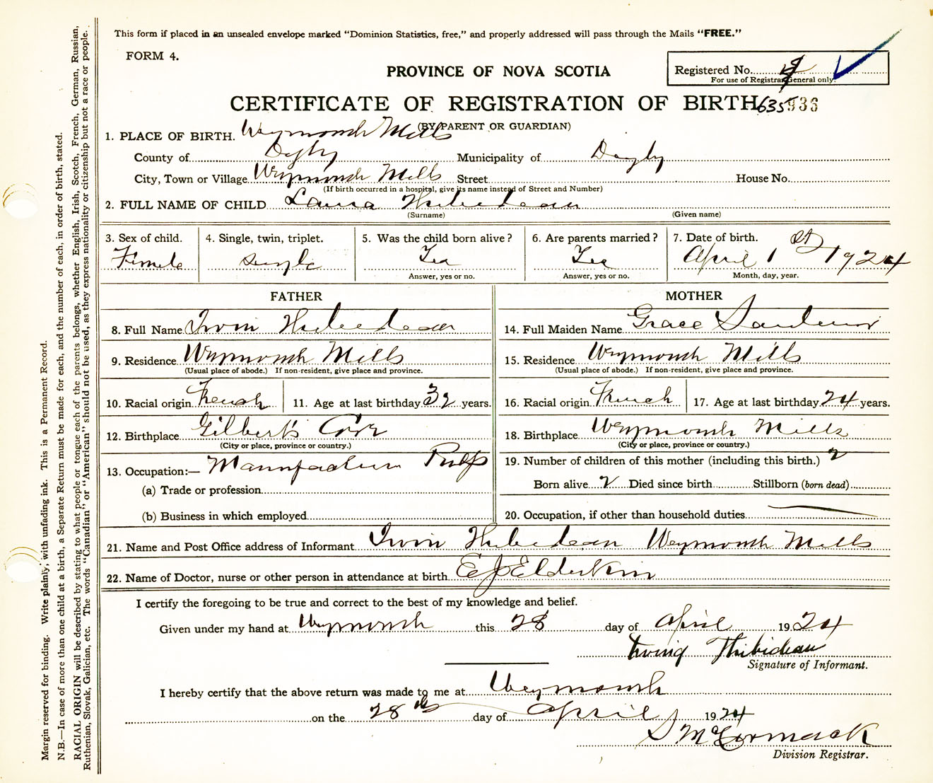 Nova Scotia Archives — https://archives.novascotia.ca/vital-statistics/birth/?ID=456487