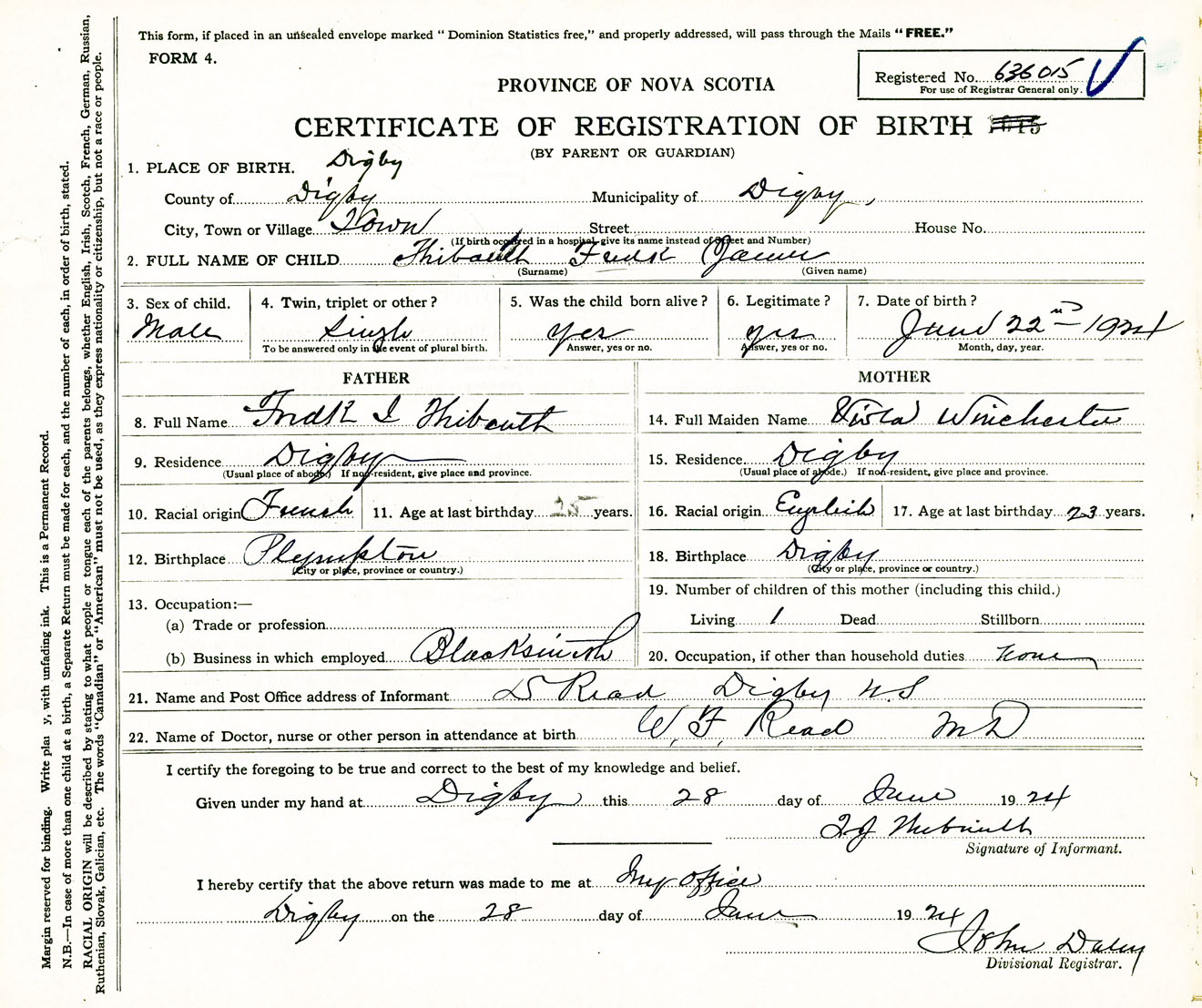 Male Birth Registration: Year: 1924 number: 63600015