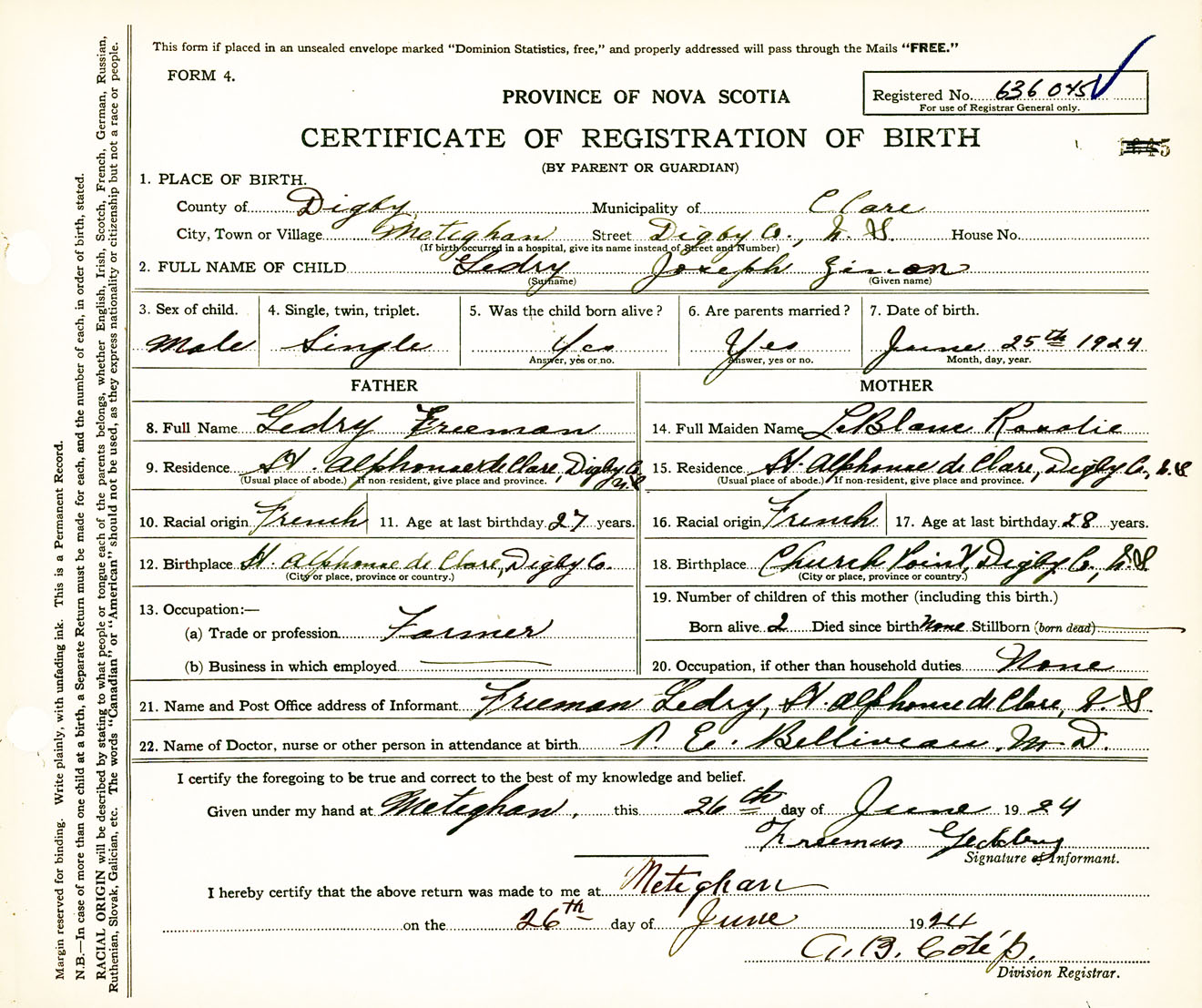 Male Birth Registration: Year: 1924 number: 63600045
