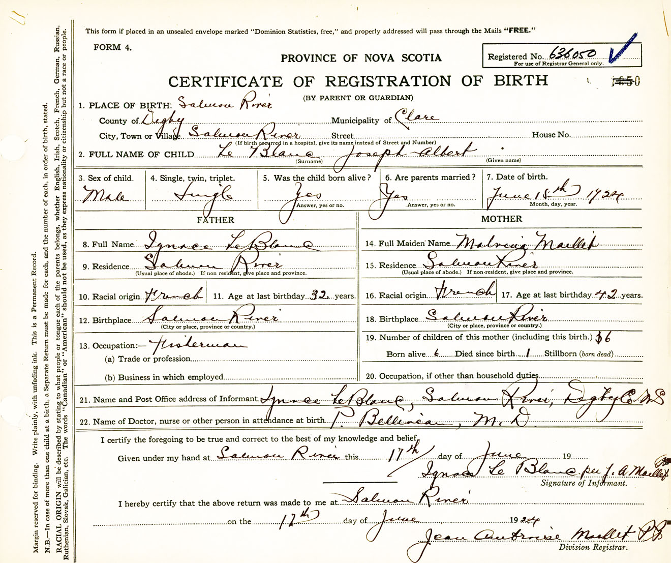Male Birth Registration: Year: 1924 number: 63600050