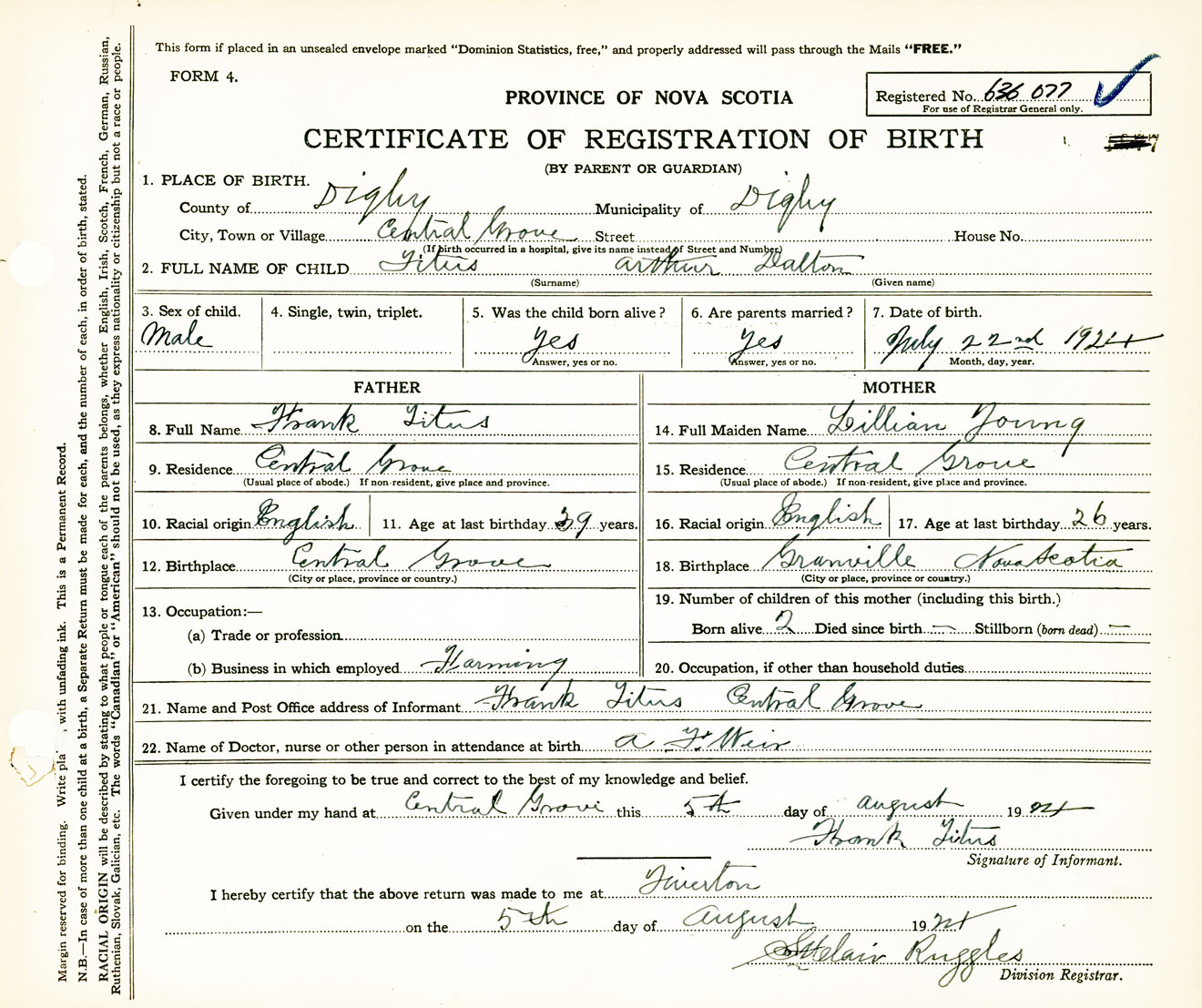 Male Birth Registration: Year: 1924 number: 63600077