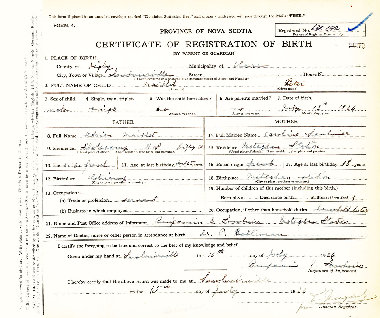 Male Birth Registration: Year: 1924 number: 63600092