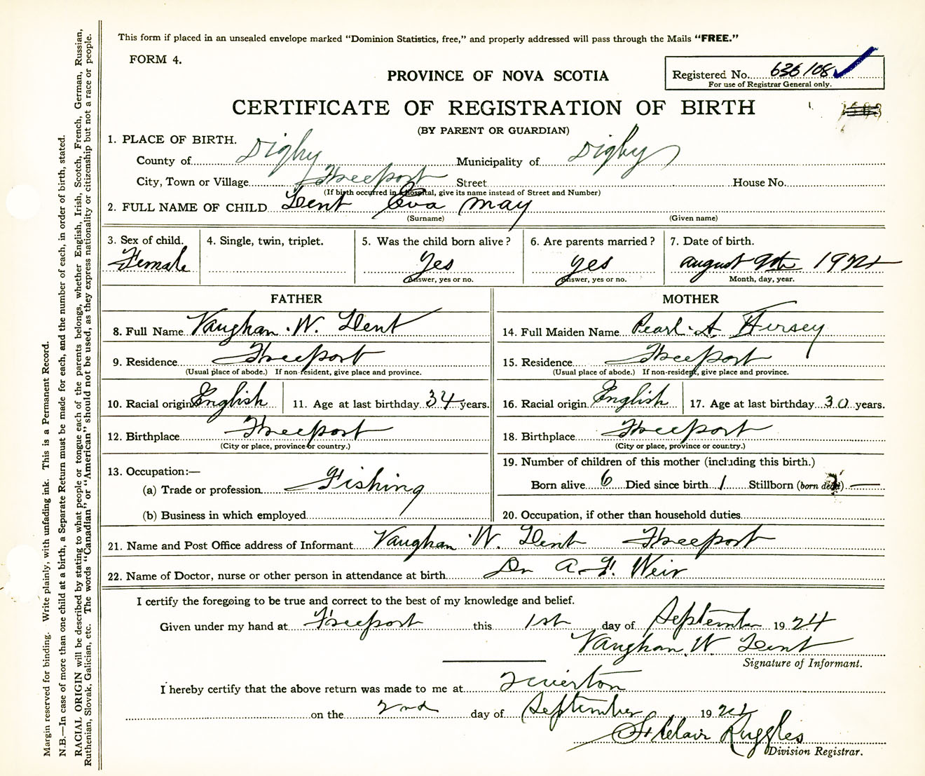 Female Birth Registration: Year: 1924 number: 63600108