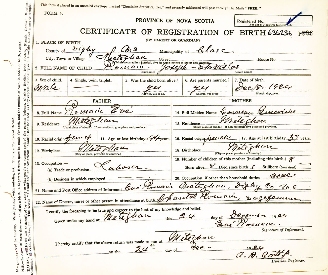 Male Birth Registration: Year: 1924 number: 63600236