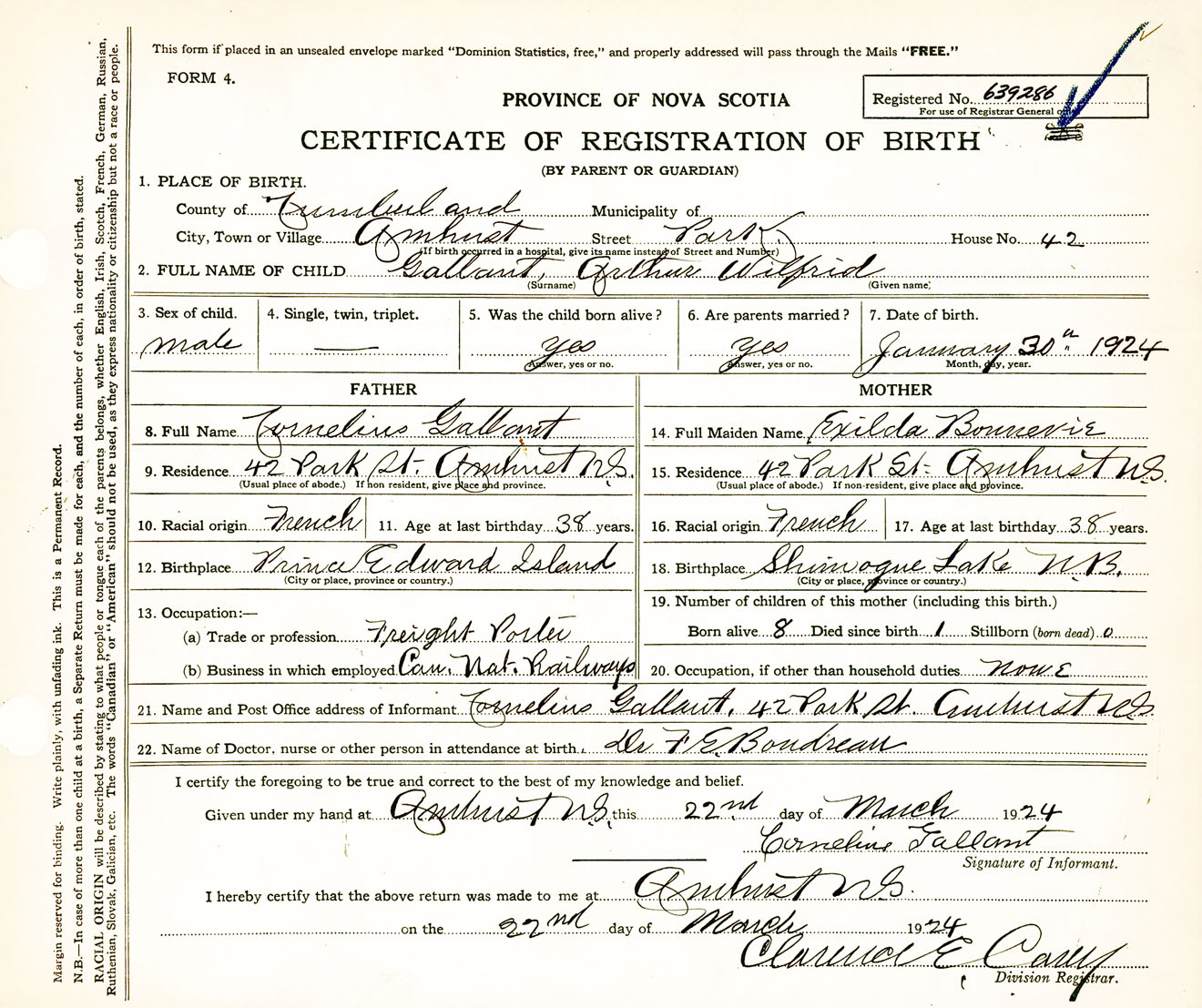 Male Birth Registration: Year: 1924 number: 63900286