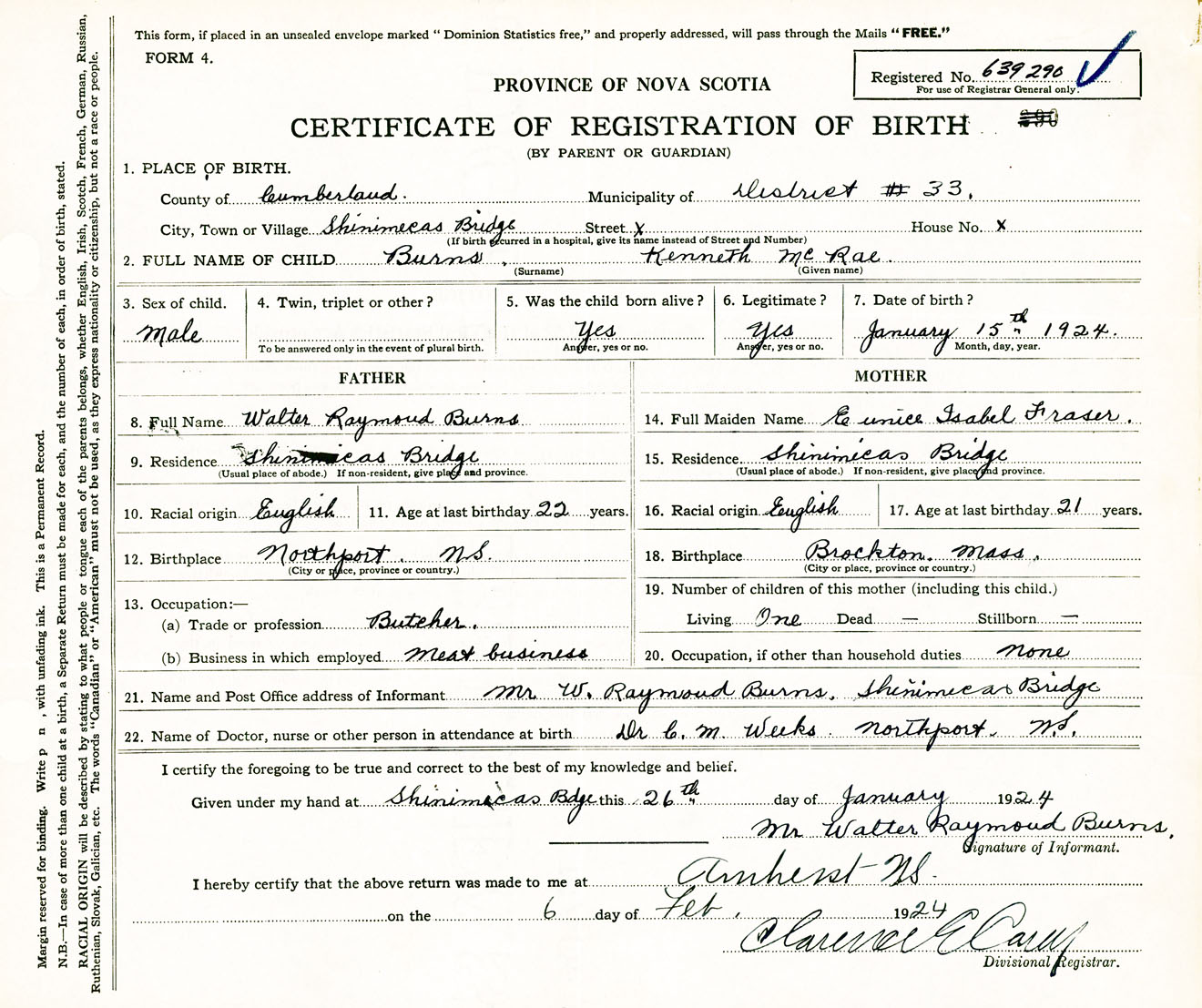 Male Birth Registration: Year: 1924 number: 63900290