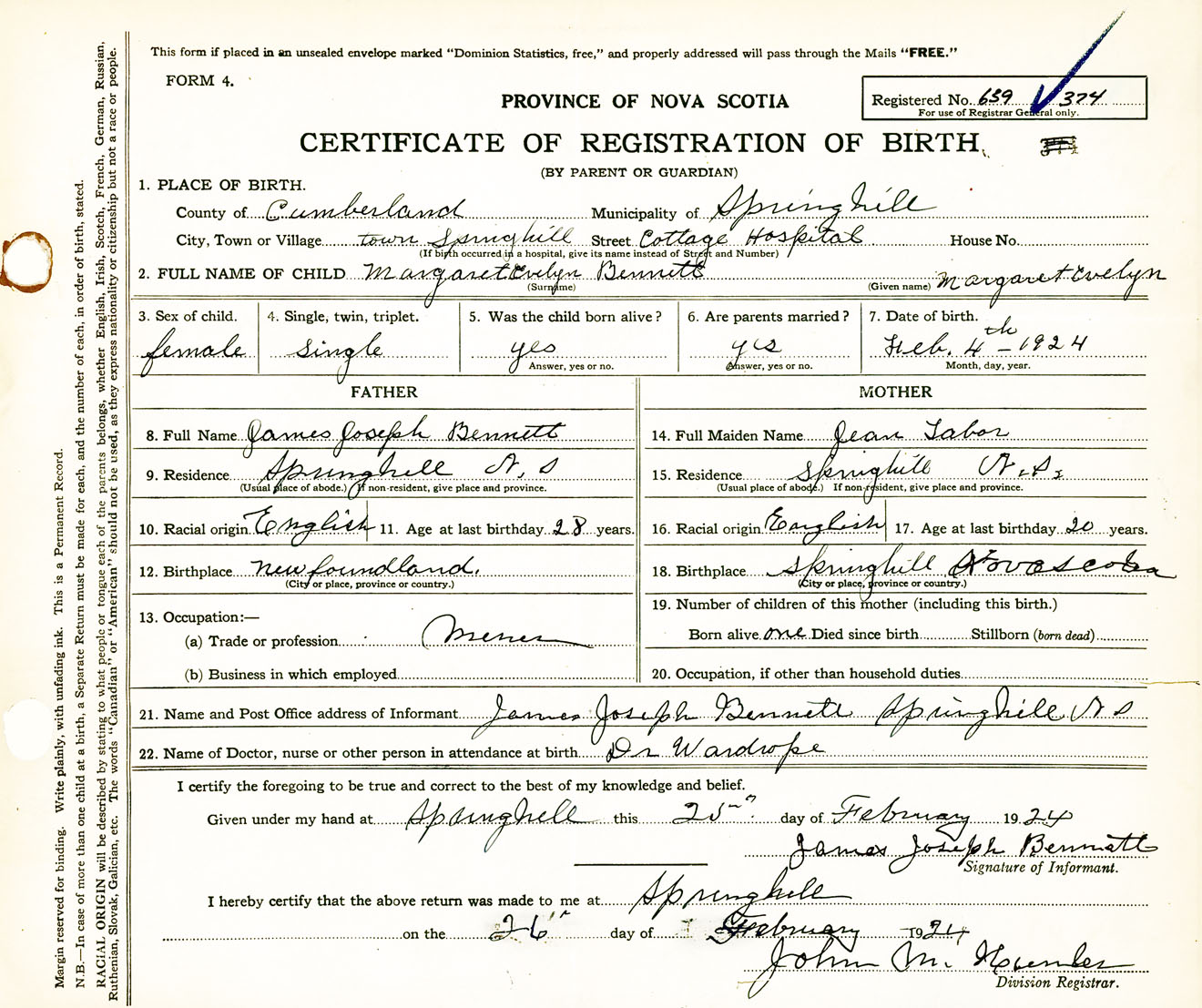 Female Birth Registration: Year: 1924 number: 63900374