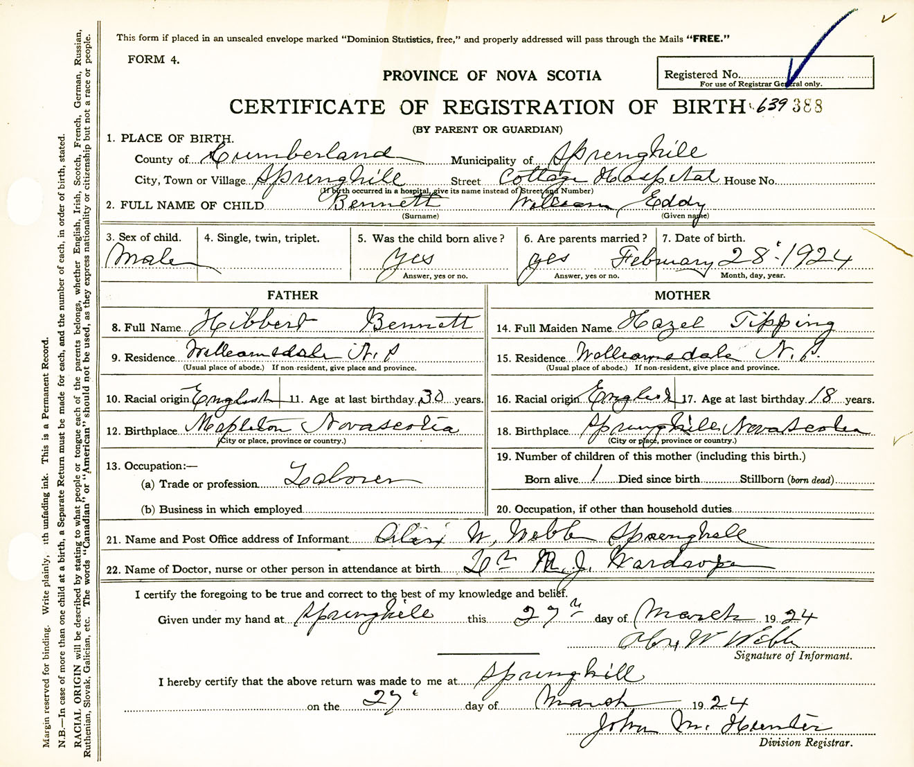Male Birth Registration: Year: 1924 number: 63900388