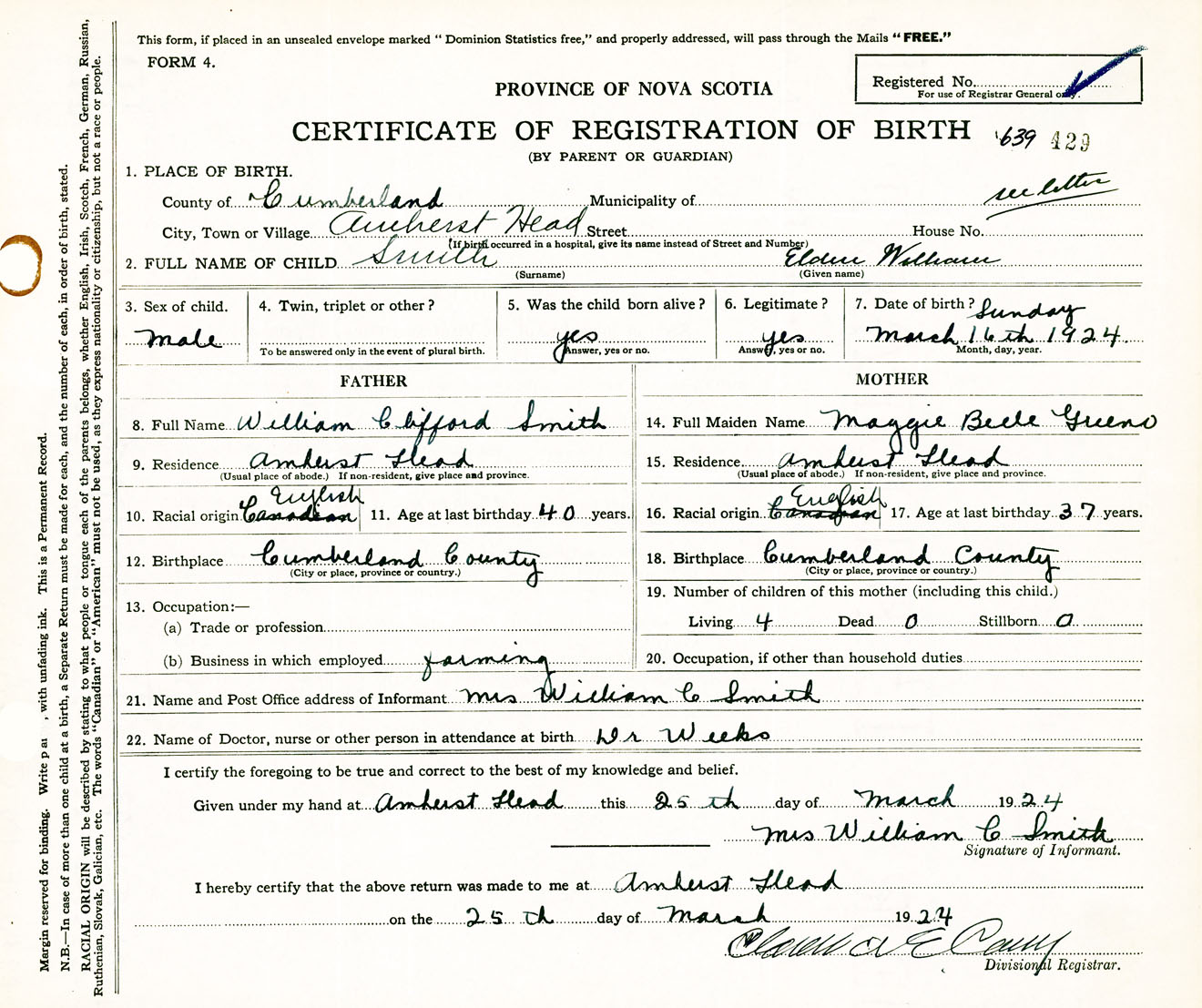 Male Birth Registration: Year: 1924 number: 63900429