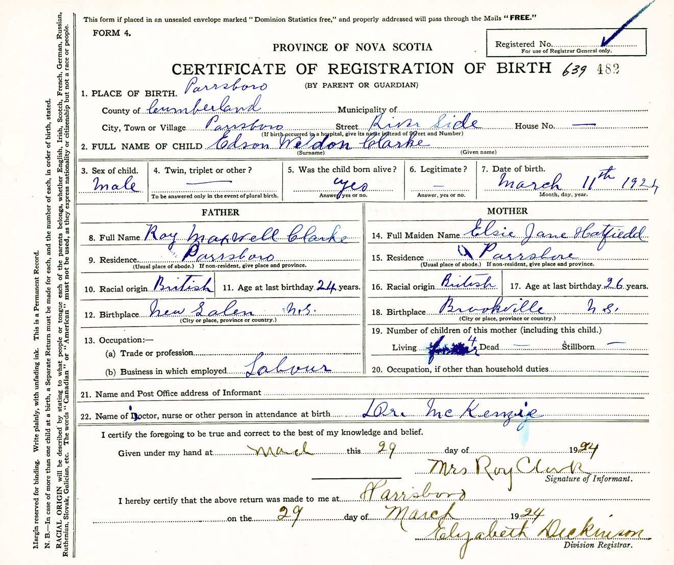 Male Birth Registration: Year: 1924 number: 63900482