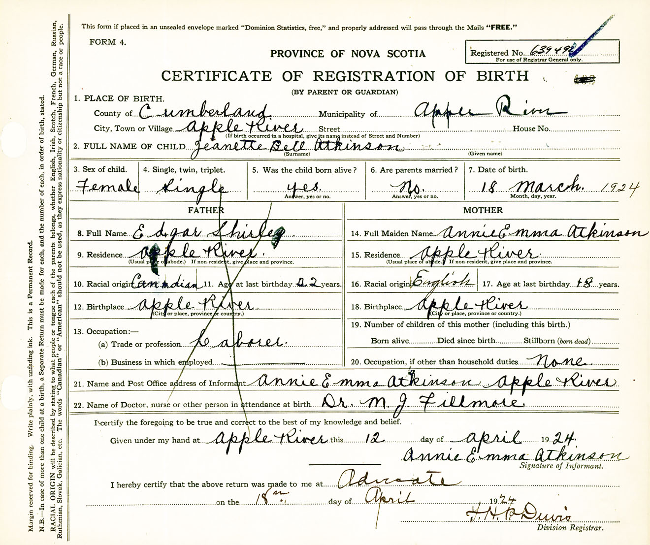 Nova Scotia Archives — https://archives.novascotia.ca/vital-statistics/birth/?ID=457020