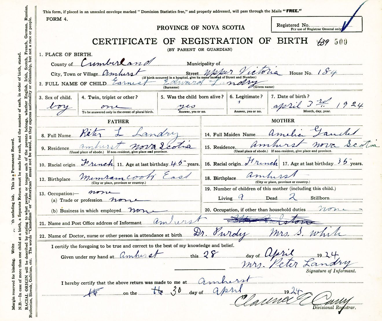 Nova Scotia Archives — https://archives.novascotia.ca/vital-statistics/birth/?ID=457027