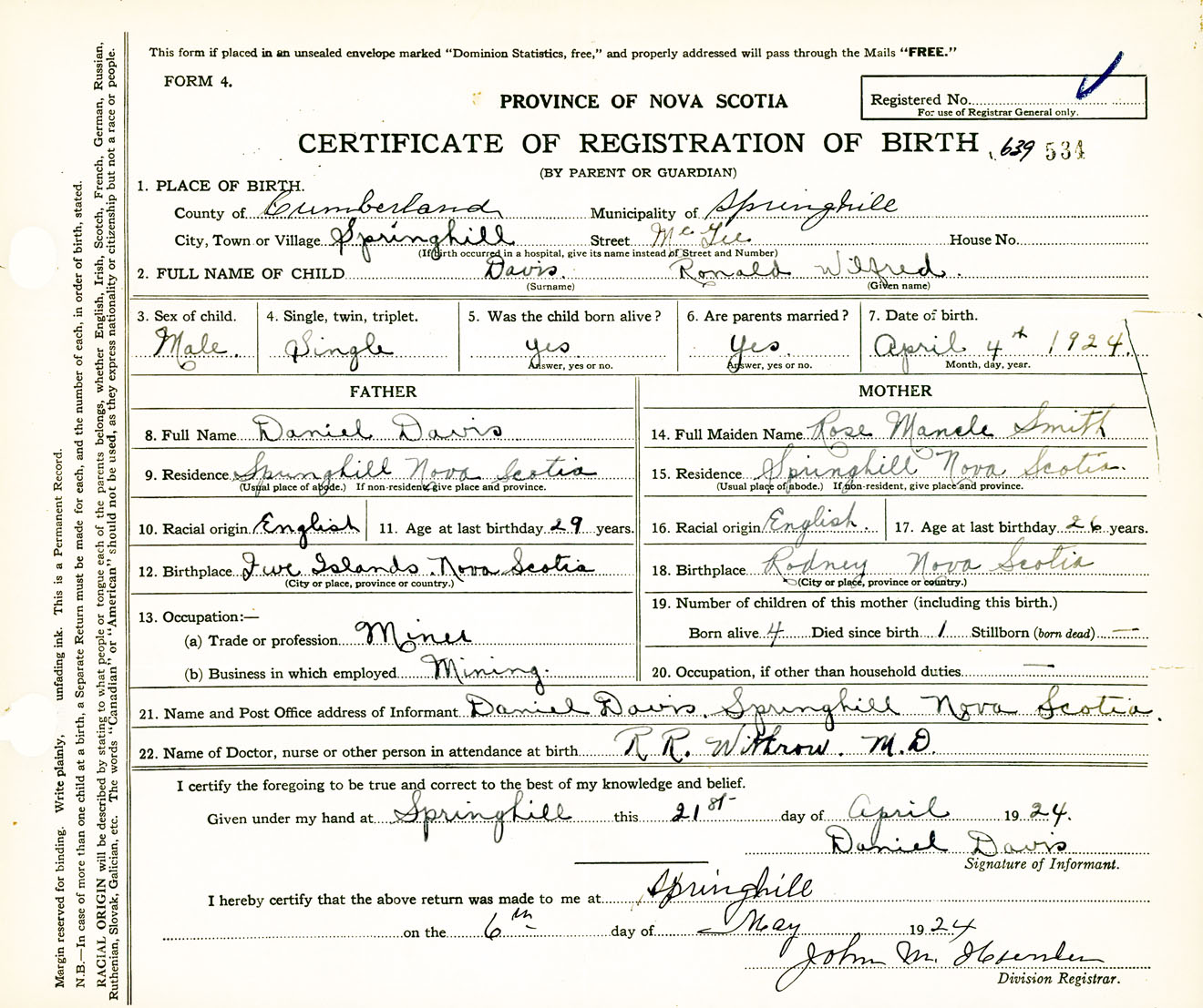 Male Birth Registration: Year: 1924 number: 63900534