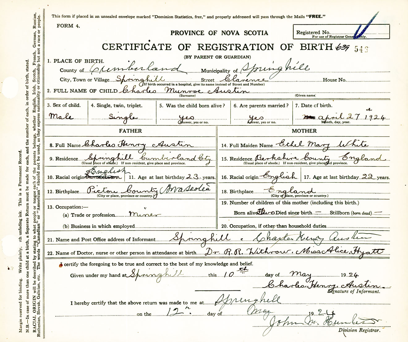 Male Birth Registration: Year: 1924 number: 63900546