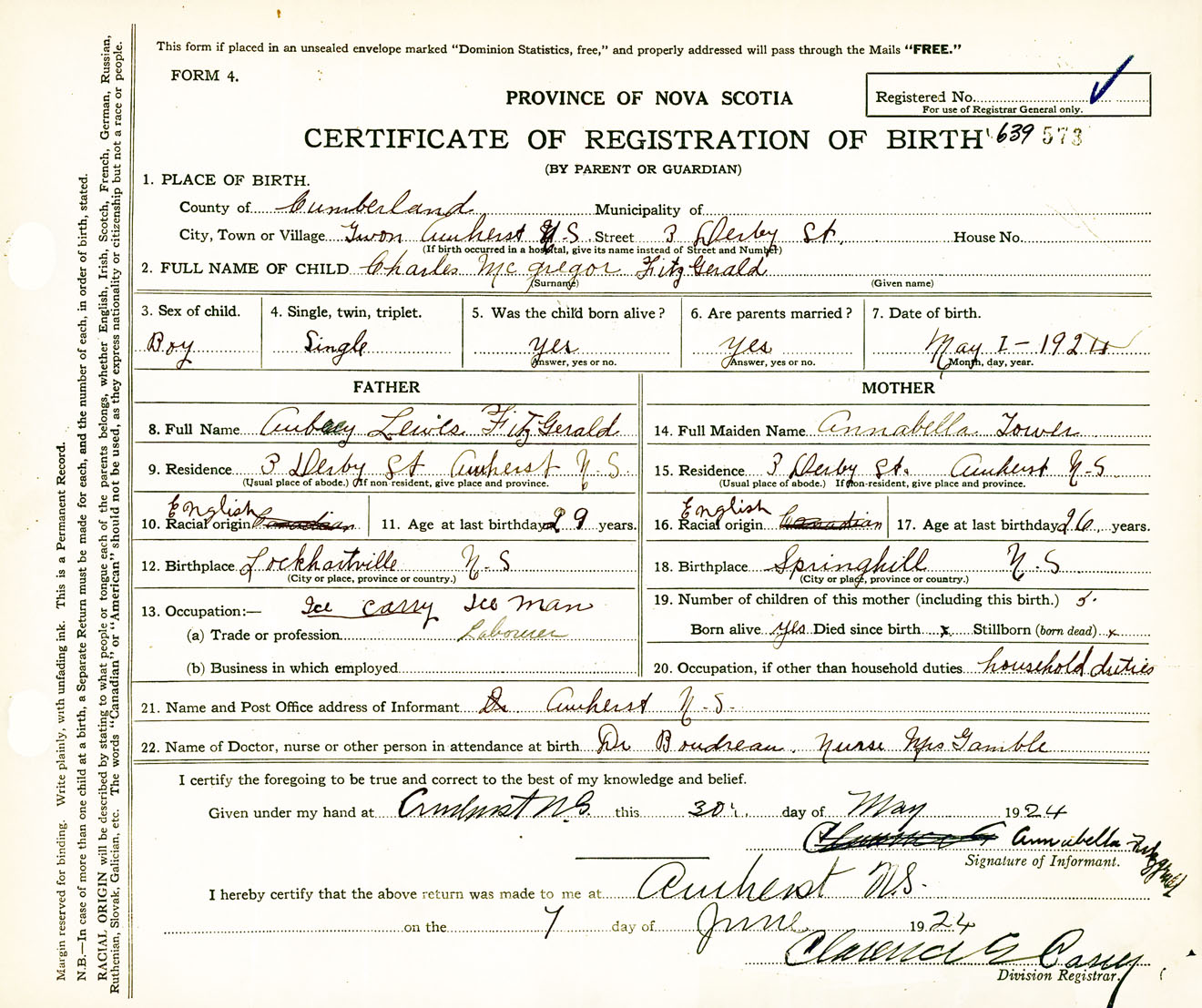 Male Birth Registration: Year: 1924 number: 63900573