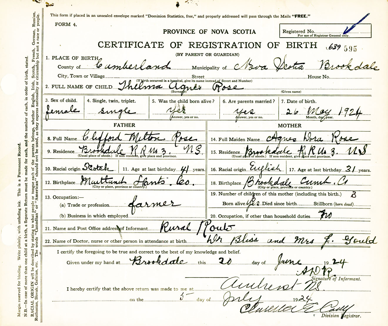 Female Birth Registration: Year: 1924 number: 63900595