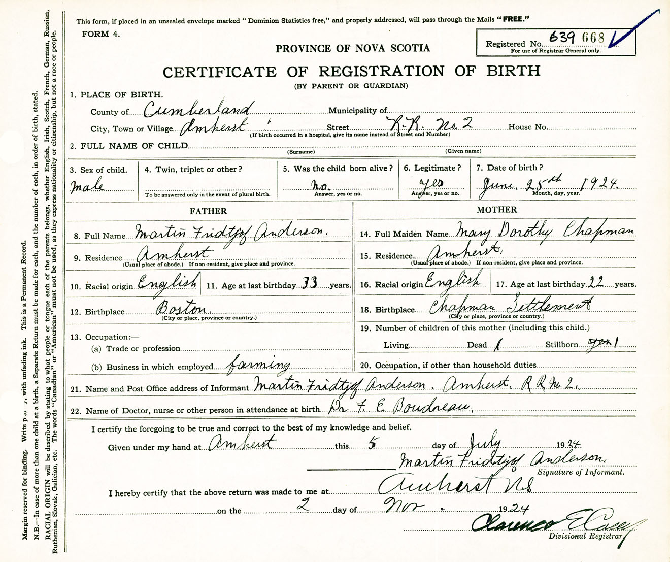 Male Birth Registration: Year: 1924 number: 63900668