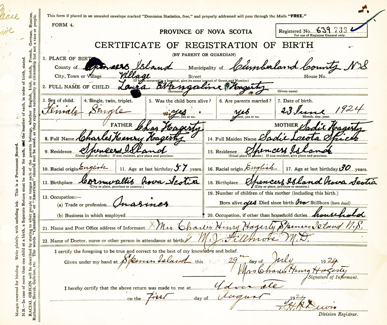 Female Birth Registration: Year: 1924 number: 63900736