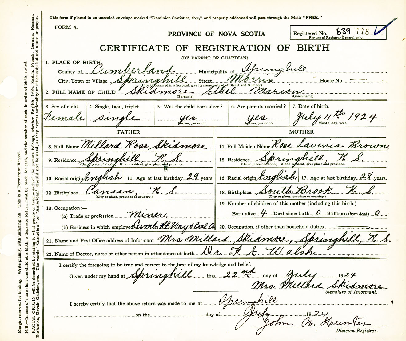 Female Birth Registration: Year: 1924 number: 63900778
