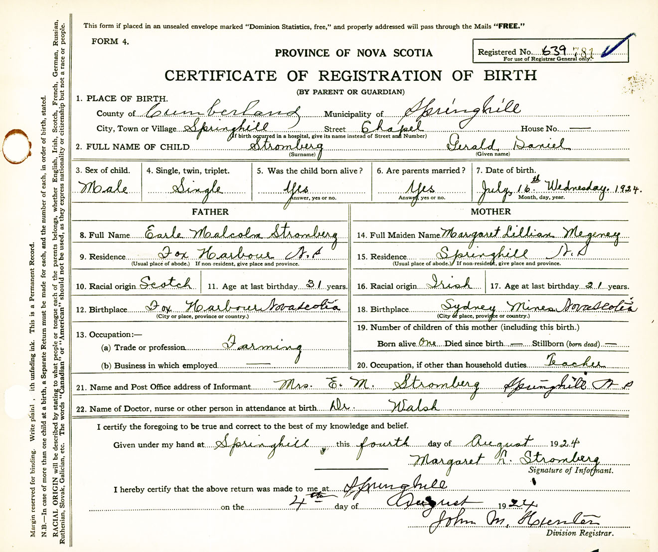 Male Birth Registration: Year: 1924 number: 63900781