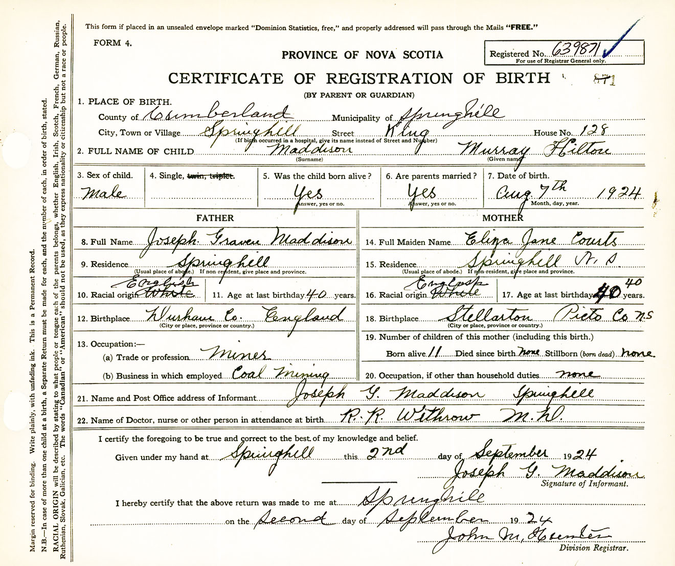 Male Birth Registration: Year: 1924 number: 63900871