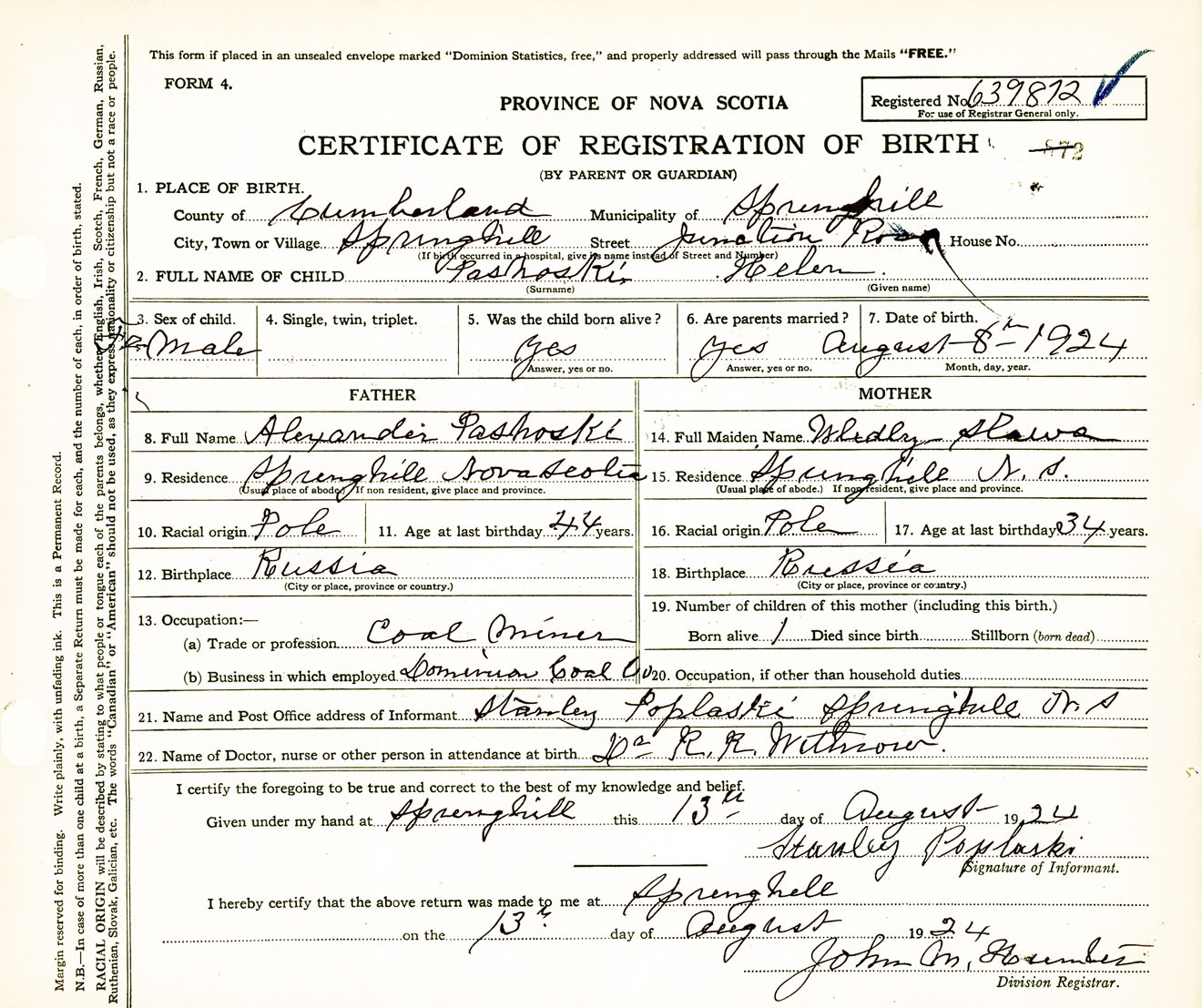 Female Birth Registration: Year: 1924 number: 63900872