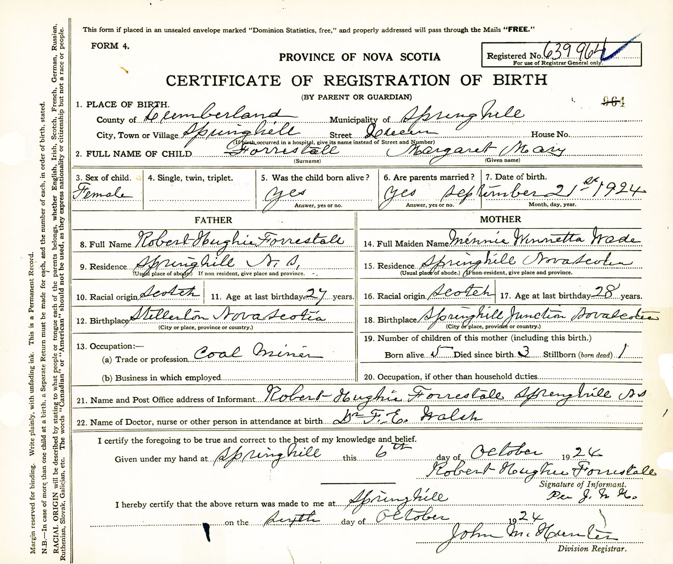 Female Birth Registration: Year: 1924 number: 63900964