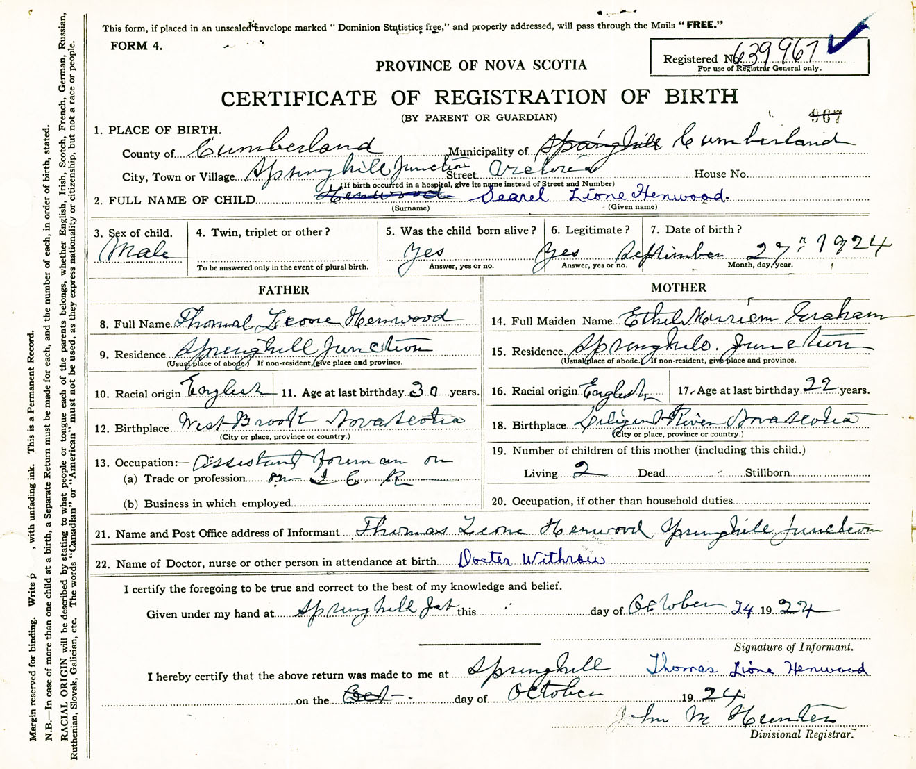 Male Birth Registration: Year: 1924 number: 63900967